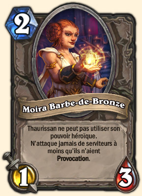 La stratégie principale de ce combat consiste à ne jamais tuer Moira Barbe-de-Bronze. En effet, ce serviteur empêche Thaurissan d'utiliser son pouvoir héroïque, qui vous inflige 30 points de dégâts. En mode héroïque, Moira devient une 3/1 et le boss utilise des cartes qui infligent des dégâts de zone à tous les serviteurs : Goule instable, Abomination ou Morsure de la mort. Votre objectif consiste donc à buffer Moira ou encore à inverser ses points de vie à l'aide de Alchimiste dément.
