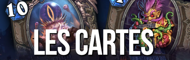 L'extension introduit 134 nouvelles cartes. Vous remarquerez que vous y retrouverez de nombreux personnages connus de Hearthstone. Toutefois, ils ont été corrompus et leurs effets changent. Vous pouvez retrouver l'intégralité des nouvelles cartes sur la page des cartes de Murmures des Dieux très anciens.